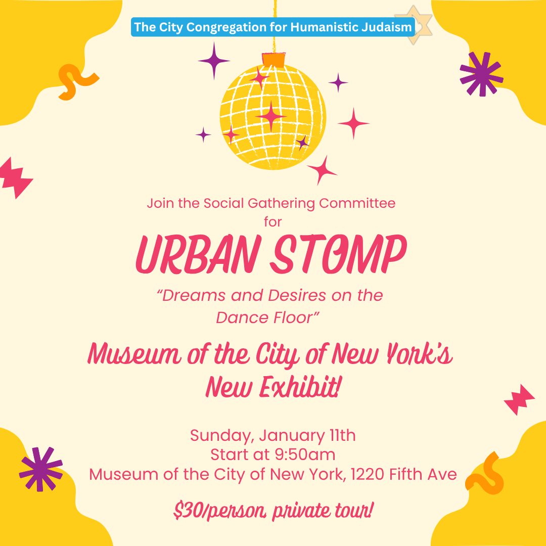 Come out and dance!!! The Social Gathering Committee invites you to a private tour of Urban Stomp: Dreams and Desires on the Dance Floor, the Museum of the City of NY’s FUN and interactive exhibit.