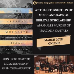 At the Intersection of Music and Radical Biblical Scholarship: Abraham’s Murder of Isaac as a Cantata Shabbat service followed by a cultural program. During the pandemic, music ... 20 Mar 07:30 PM - 09:30 PM Online streaming